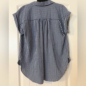 LOFT Navy and White Gingham Button-Up Short Sleeve Blouse