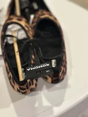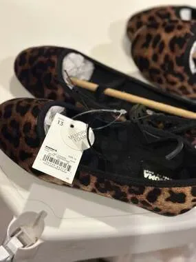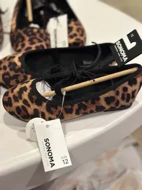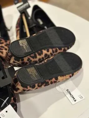 Sonoma Goods For Life Girls Izzie Leopard Ballet Flat Shoes. These adorable flats feature a trend-forward leopard print with a classic ballet silhouette and an elastic strap for a secure fit. Designed with comfort in mind, they include a Memory Foam footbed for all-day wear. Brand new with tags. Perfect for school, parties, or everyday style.