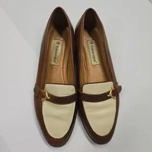 Etienne Aigner Tracy Brown Cream Leather Loafers Gold Bit Size 9.5M Brazil