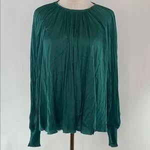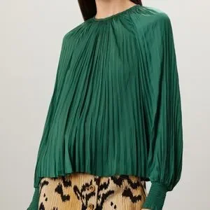Drama meets dreamy in this flowy Ulla Johnson satin blouse—think micro pleats, billowy balloon sleeves, and major main-character energy.