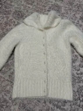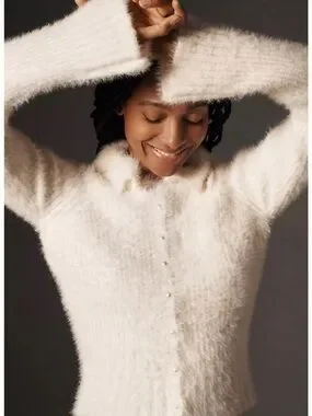 Anthropologie Pearl Button Fuzzy Cardigan Sweater
