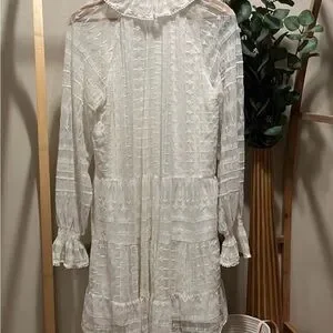 Zara White Sheer Ruffled V-Neck Tunic Dress
