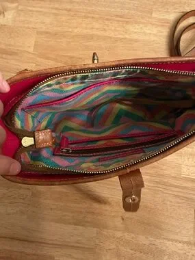 Like new DOONEY & Bourke Crossbody bag with a unique top closure and hidden zipper closure. Rainbow interior, two open internal pockets with one zipper pocket. Comes from a smoke free, pet free home.