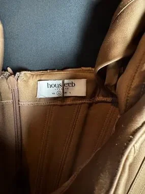 HOUSE OF CB ‘Loretta’ Toffee Satin Off Shoulder Dress 🤎 Size S (US 4–6)