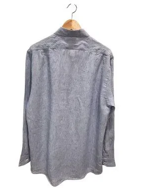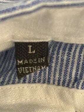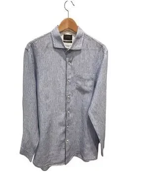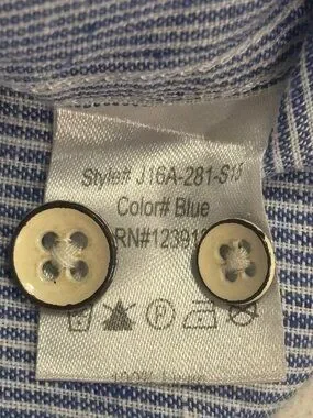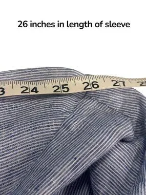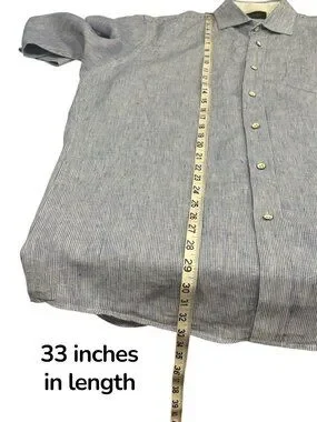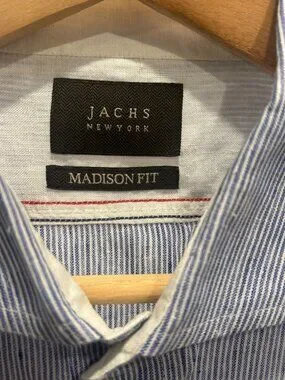 Jachs NY Blue Stripe Button Shirt Linen Blend Madison Fit Mens Large