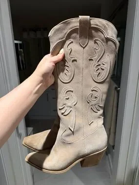 Dolce Vita Taupe Suede Western Knee-High Boots