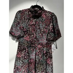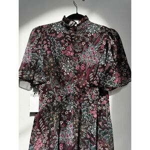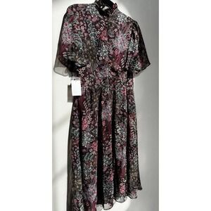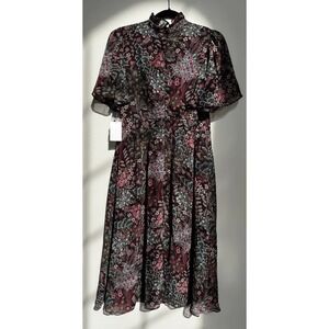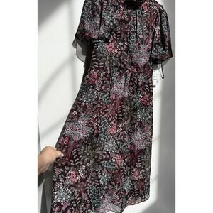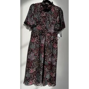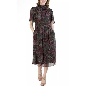 Julia Jordan Dark Floral Dress 4 Flutter Sleeve A-Line Romantic Cottagecore Midi