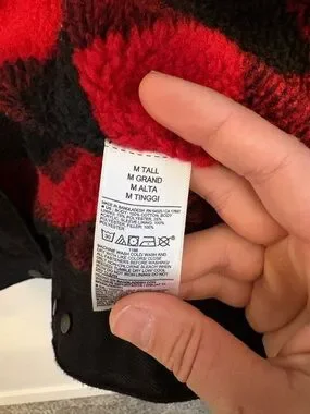 • Red & black buffalo plaid sherpa lining
