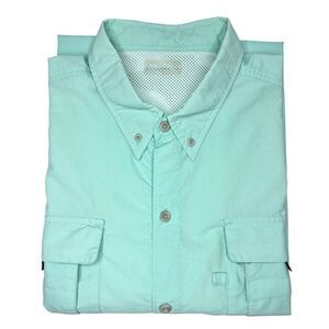* Utility Features: Dual lift-top front chest pockets with a utility loop, rod-holder loop, and secure collar buttons.
