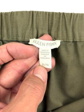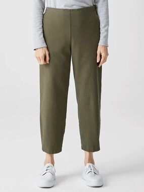 Eileen Fisher Olive Green Cotton Hemp Lantern Ankle Pant Easy Fit