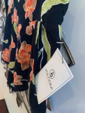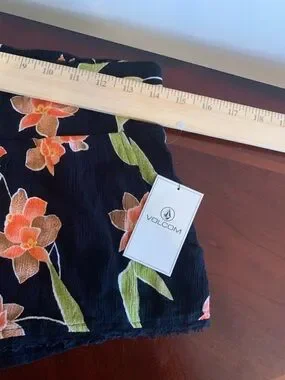NWT Volcom Black Floral Smocked-Waist Shorts