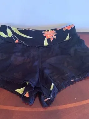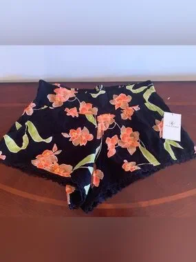 NWT Soft black shorts with a smocked elastic waist. Orange floral print with green leaf accents. Lightweight and breezy for warm days. Casual and easy to style.