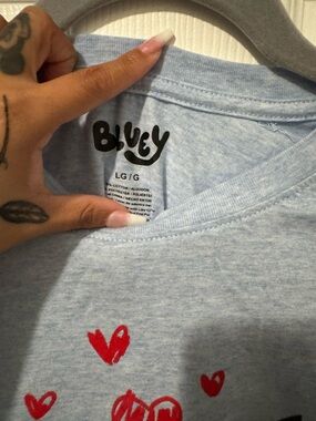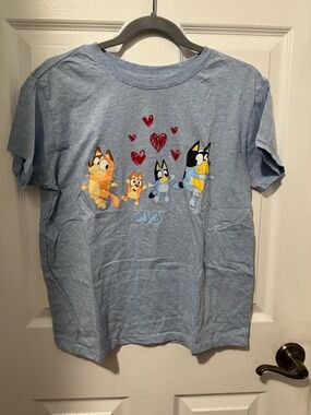Light Blue Short-Sleeve Tee with Cartoon Bluey Characters