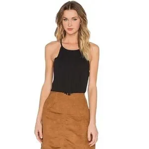 360 Sweater Presley Italian Yarn fringe black Tank Shell Top