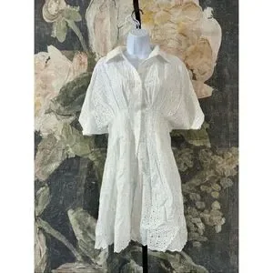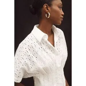 New Anthropologie The Tobie Eyelet Mini Shirt Dress by Exquise Size M