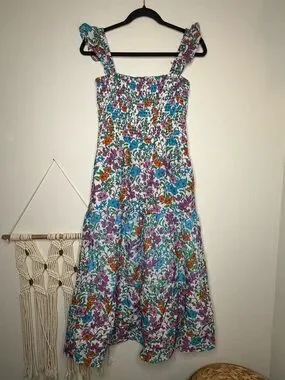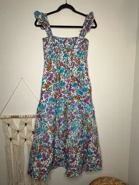 Anthropologie Roller Rabbit Dress Blomst Doe Silk Cotton Floral Shirred Sundress