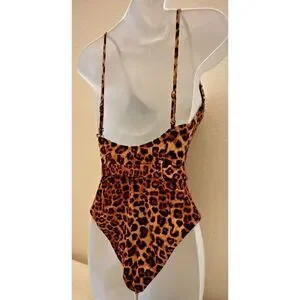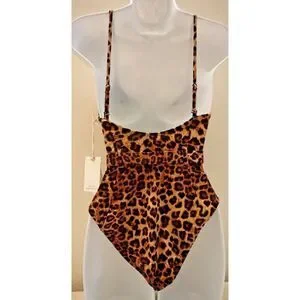 Good American GSW0020 Women's Sz 1/S Leopard Print Showoff 1-Pc Swimsuit