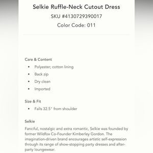 Anthropologie x Selkie Ruffle-Neck Cutout Dress/ size XS
