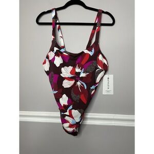NWT Athleta Hermosa One Piece Swimsuit Size L/T Floral Beach Resort Red Travel