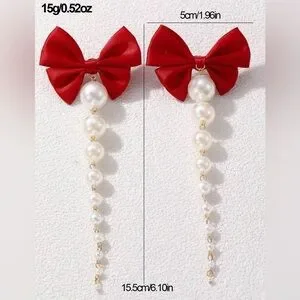 RED BOW PEARL DROP FASHION EARRINGS ARE ABSOLUTELY STUNNING & ELEGANT! ADD THIS TO A DRESS OR JUMPSUIT AND HAVE A INSTANT FABULOUS LOOK