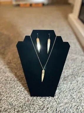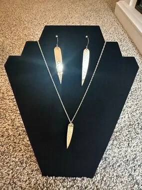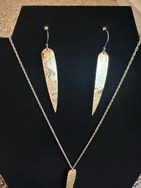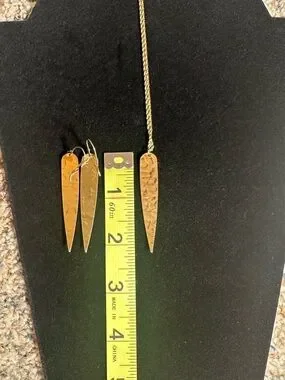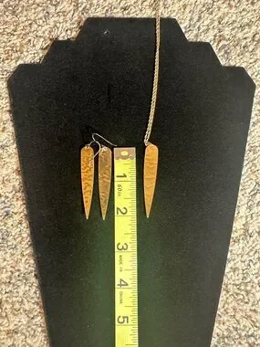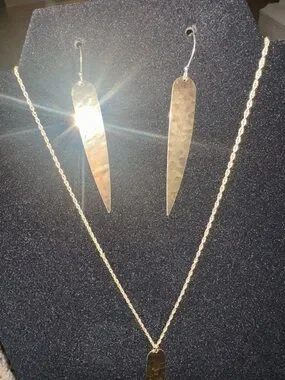 Holly Yashi, An American handmade artisan jewelry company Vintage Set. Earrings and Necklace. Hand-hammered texture and beautiful finish. Beautiful Vintage Set, excellent condition, no scratches or dents. Gold tone see photos for measurements.