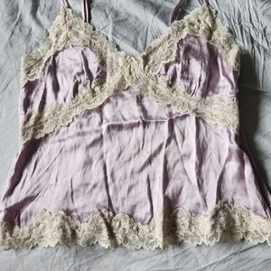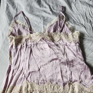 Lilac Satin Lace-Trim Chemise with Cream Lace