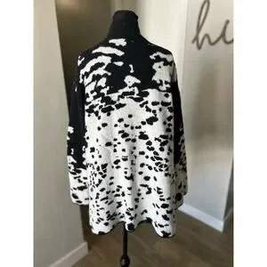 POL Women's Black White Abstract Print Open Front Waterfall Cardigan Sweater