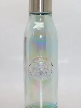Starbucks Iridescent Rainbow Glass Water Bottle - Silver Cap