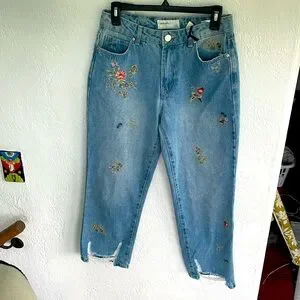 NWT Banjara High Rise Straight Leg Crop Floral Embroidered Jeans Women’s Size 7