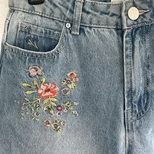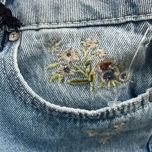 Banjaro Floral Detailed Embroidered Jeans NWT . Waist measurement is 14 inches with a 26 inch inseam and 11 inch rise. These jeans are 100% cotton with frayed edge distressed hem. These jeans are brand new size 7/27. Questions? Leave a comment below!