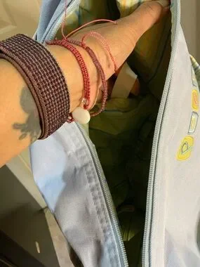 Back side panel has minor stains as shown in picture the zipper pull was replaced with a flower