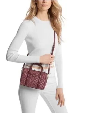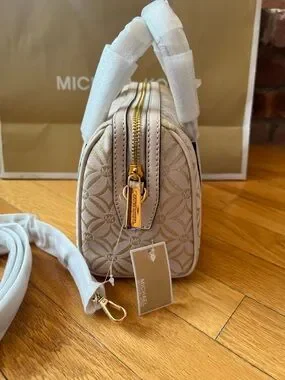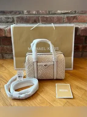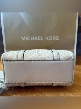 AUTHENTIC & Gorgeous Michael Kors Travel Small Duffle Crossbody in Pale Gold Multi (Ivory w/ gold geometric pattern)!!