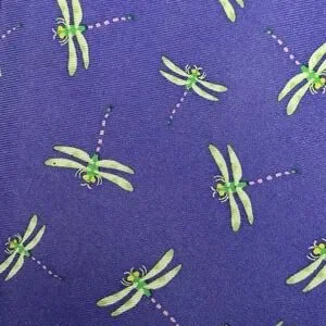The Alynn Dragonfly Silk Tie is a unique novelty necktie designed for men. Made of high-quality silk with a geometric purple and green pattern, this wide tie features a dragonfly design, perfect for those interested in nature and insects. The classic length of 57 inches makes it suitable for various formal occasions, adding a touch of designer style to any ensemble. Imported from China, this tie is sure to make a statement and stand out in any man's accessory collection.