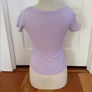 Aerie Light Purple Pointelle Knit Short Sleeve Button-Down Top XS