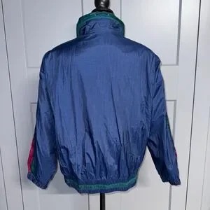 Keywords: track jacket, windbreaker, sportswear, athletic, vintage, retro, bold print, statement piece, colorful, loungewear, outerwear, casual, streetwear