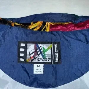 River Edge 80's Sport Windbreaker Jacket Sz M Colorful Baroque Print Nylon Track