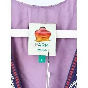 The lightweight fabric and playful lavender tones make it perfect for warm-weather occasions, vacations, or standout daytime looks. A fun and stylish piece that embodies FARM Rio’s signature colorful aesthetic.