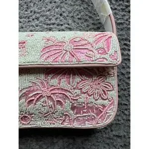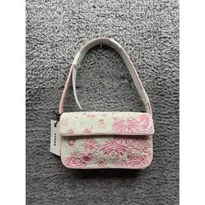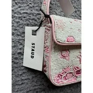 NWd Staud Women's Tommy Cherry Blossom Toile Ivory Beaded Flap Shoulder Bag