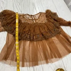 Free People Sheer Mustard Ruffle Blouse