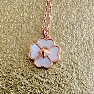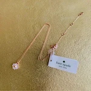 Kate Spade Rose Gold Flower Pendant Necklace Cream Enamel Spade Logo NWT Gift