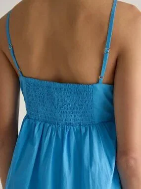 Quince 100% Organic Cotton Sleeveless Maxi Dress Cornflower Blue M NWT