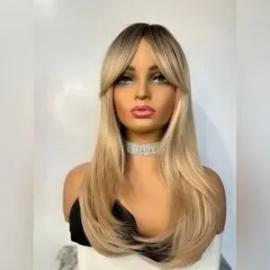 24 Inch Dark roots Butterfly hair Style Wig With side Curtain Bangs | Ultra Natural Look | Real Hair Feel Description: Achieve a beautifully natural look with this 24 inch long synthetic wig in a rich dark roots Blonde shade. With a viral Hair Style Similar to Sabrina Carpenter.