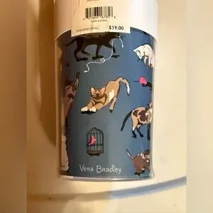 Vera Bradley Blue Cat Print Travel Tumbler with Straw
