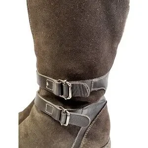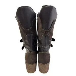 Aquatalia Women’s Mid Calf Boots Brown Suede Waterproof Block Heel Size 7.5