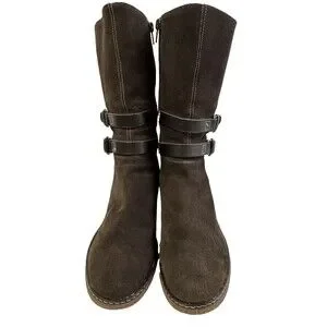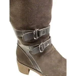 The Aquatalia women's mid-calf boots in size 7.5 are made of waterproof suede with a block heel, perfect for casual occasions in the winter, fall, and spring.