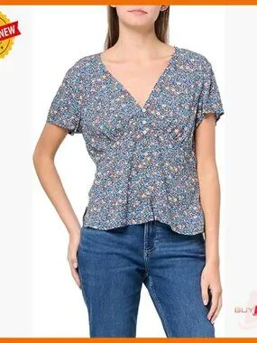 Short Sleeve Button Front Top Viscose Floral Print Regular Fit