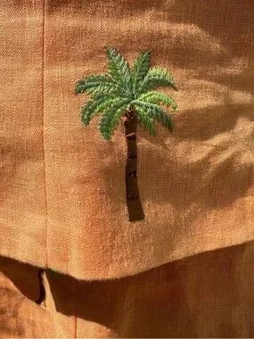 Jade by Melody Tam 100% Linen Embroidered Palm Tree Two Piece Set Size 4