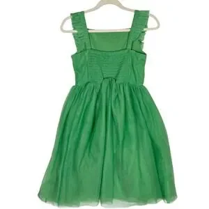 Features: 3D floral appliques on bodice, ruffled straps, smocked back panel, layered tulle skirt