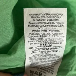 Material: 100% Polyester Main; 100% Cotton Lining