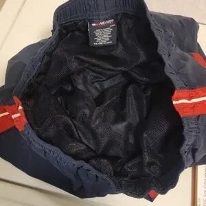 Excellent Condition Vintage Tommy Hilfiger Athletics Navy Blue / Red Windbreaker Track Pants - Mesh Lined - Ankle Zippers. Men's Medium. Actual measurements: 30" waist, 31" length.